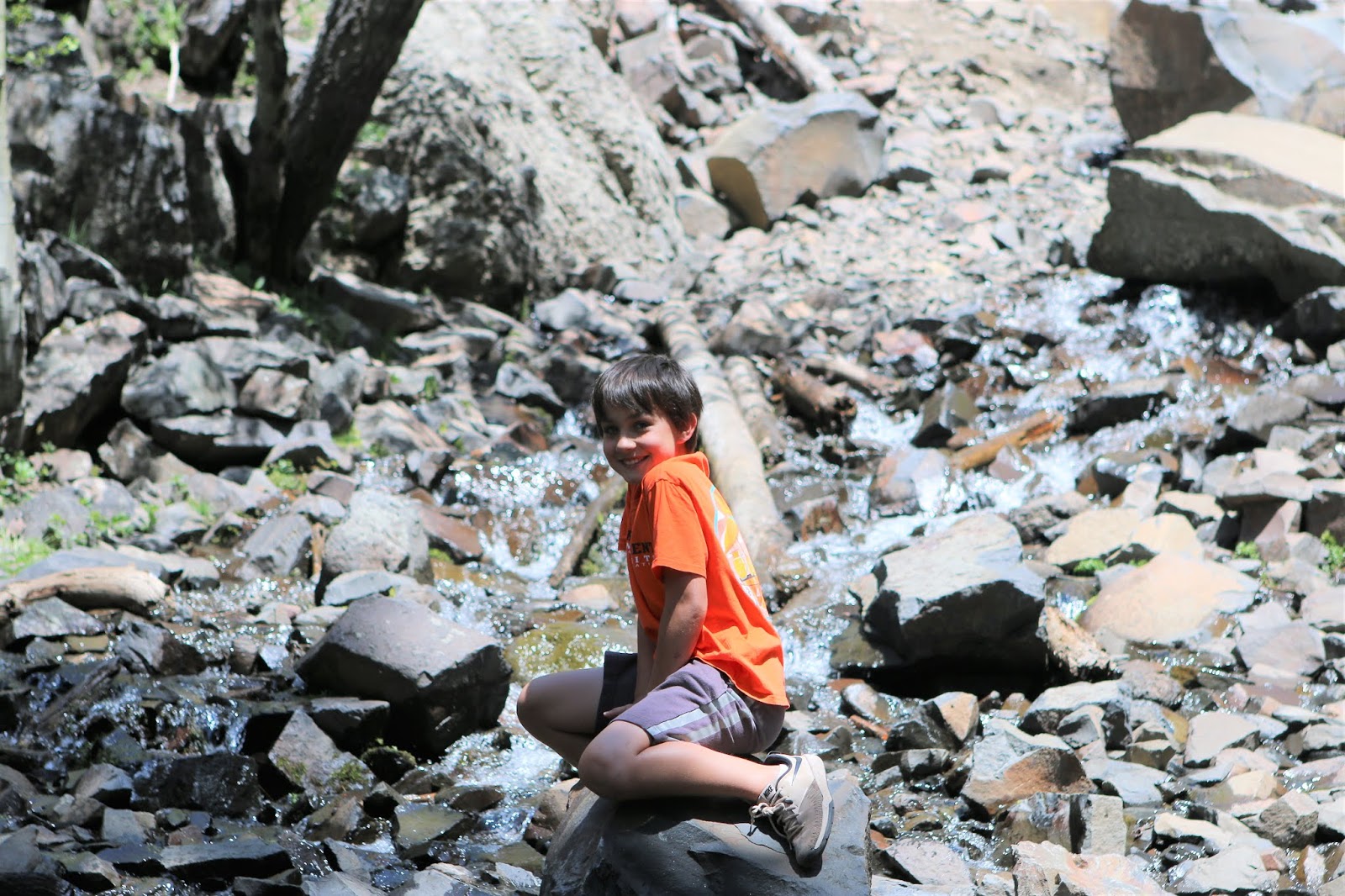 And finally, we hit Palisade Falls Trail in Gallatin National Forest. Palisade Falls is a short 1.1 mile out and back trail that leads to a beautiful waterfall. It was at this waterfall that Henry decided rock climbing would be his sport. Like Charlie in her kitchen, Henry would still be scaling rocks at Palisade Falls if given the choice.